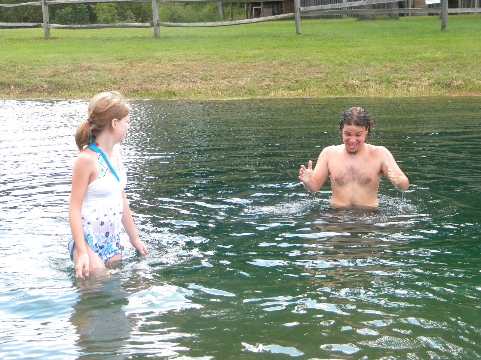 Sunday we were ready to hit the road again, when the RV decided to quit taking gas. Just like that. We found a campground nearby and prayed that we had enough gas to get there. We did, and the people who owned the RV Park were so nice, they found a mechanic on a Sunday, to come and help us with the gas tank. God bless them. A man came around not 2 hours later to fix it up, and bring us to the gas station and try it out. It started taking gas again, not as fast as normal, but we were just grateful that it was. We ended up spending the day and night in Leslie Michigan, there was a pond that Justin and Kyrsten swam in, and we all had the opportunity to take an outdoor shower ☺ that was interesting…