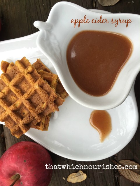 Pure, local maple syrup is usually our gig, but we saw this goodness and just had to give it a try. My daughter, Kyrsten (now ascended to rock star status) gets all of the credit for making these waffles and its apple-y, gooey, cinnamon-y, buttery, dripping with yum syrup. This Apple Cider Syrup has a kick of apple that surprised and very much pleased our tastebuds. We cut this recipe in half as she made this as well as Cinnamon Syrup for one meal, but I will include directions for the full recipe.